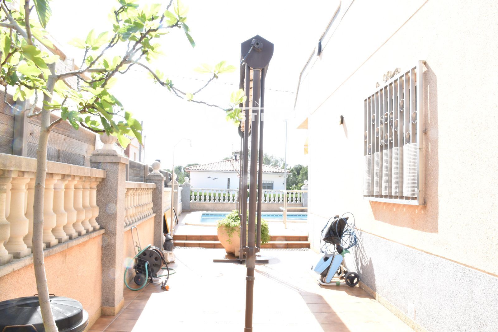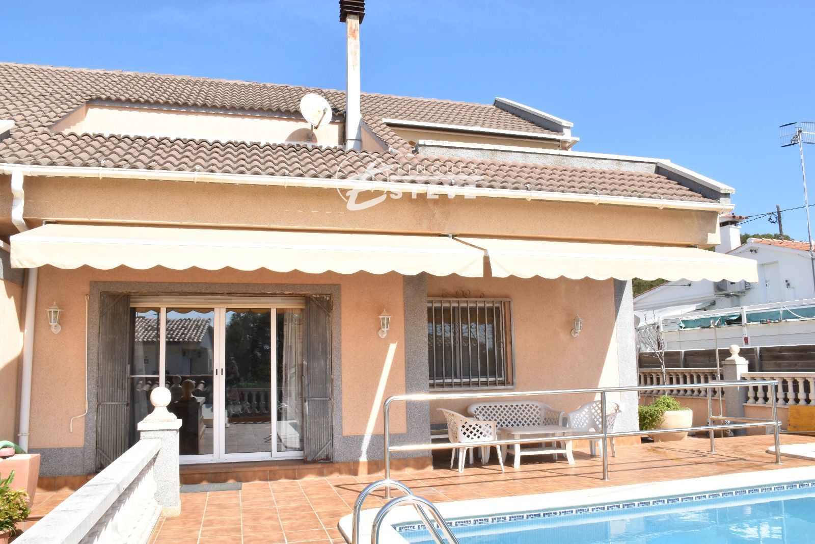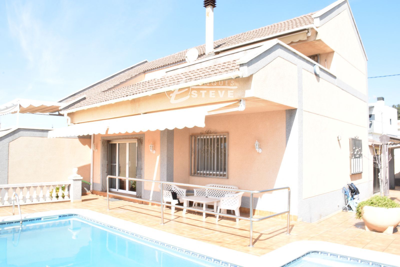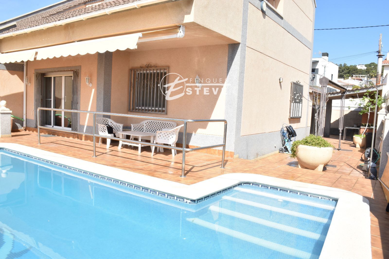 El corazón de la propiedad reside en su parcela de 450 m². Aquí, la privacidad es la protagonista. Imagina los fines de semana sumergiéndote en tu piscina propia, rodeado de un jardín que invita al descanso. Es el espacio ideal para cenas al aire libre, donde la brisa marina refresca las noches de verano y las vistas al mar sirven de telón de fondo para cualquier celebración.